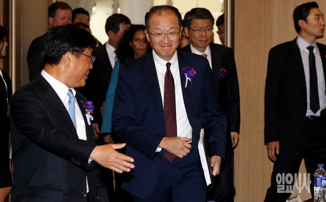 김용 세계은행 총재가 5일 서울 중구 밀레니엄 힐튼호텔에서 열린 '개도국 진출기반 강화를 위한 코트라-세계은행그룹 포럼'에 참석하고 있다.