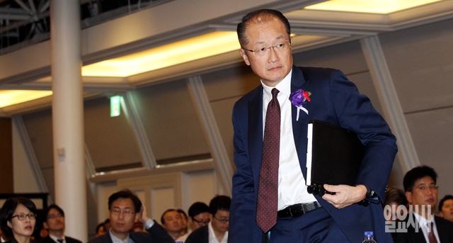 김용 세계은행 총재가 5일 서울 중구 밀레니엄 힐튼호텔에서 열린 '개도국 진출기반 강화를 위한 코트라-세계은행그룹 포럼'에 참석하고 있다.