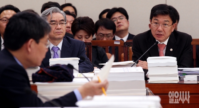 윤상직 산업통상자원부 장관이 6일 서울 여의도 국회에서 열린 외교통일위원회 전체회의에 참석, 의원들의 질의에 답하고 있다.