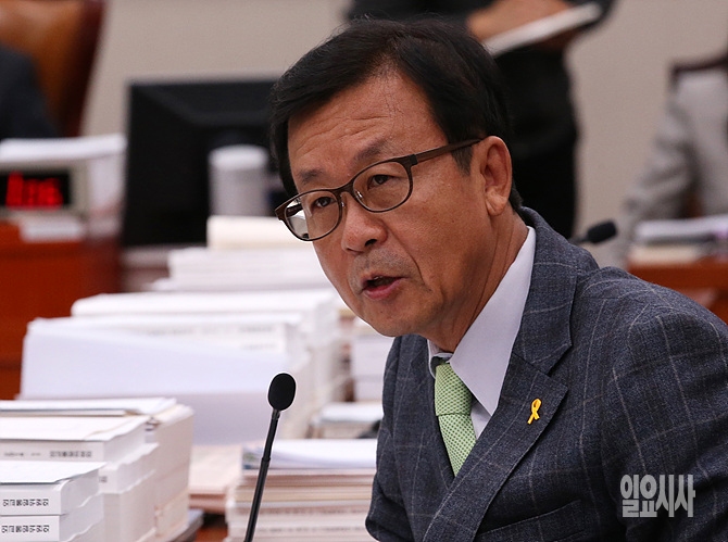 6일, 서울 여의도 국회에서 열린 외교통일위원회 전체회의에서 새정치민주연합 원혜영 의원이 윤병세 외교부장관에게 질의하고 있다.