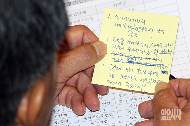 새정치민주연합 신학용 의원이 7일 서울 여의도 국회에서 열린 예산결산특별위원회 전체회의에서 메모를 보며 질의하고 있다.
