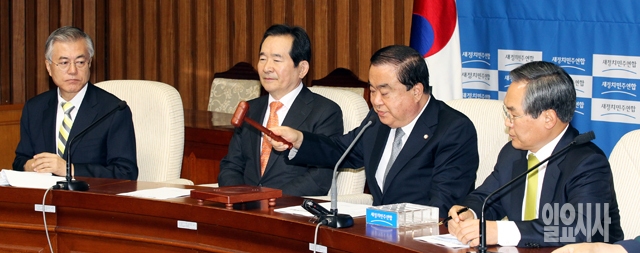 새정치민주연합 문희상 비상대책위원장이 10일 서울 여의도 국회에서 열린 당무위원회의에서 의사봉을 두드리고 있다.