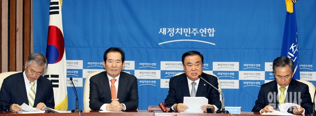 새정치민주연합 문희상 비상대책위원장(오른쪽에서 두번째)이 10일 서울 여의도 국회에서 열린 당무위원회의에서 모두발언을 하고 있다.