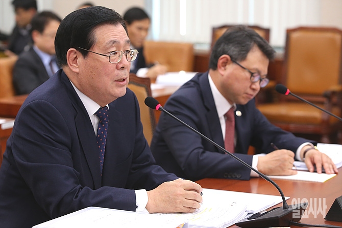 서울 여의도 국회 법제사법위원회 회의실에서 10일 열린 예산안 심사 전체회의에서 황찬현 감사원장이 의원들의 질의에 답변하고 있다.