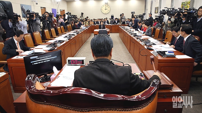 11일 오후 서울 여의도 국회 미래창조과학방송통신위원회 회의실에서 700MHz 대역 용도 관련 공청회가 열린 가운데, 홍문종 미창위원장이 의사봉을 두드리며 공청회 안건을 상정시키고 있다.