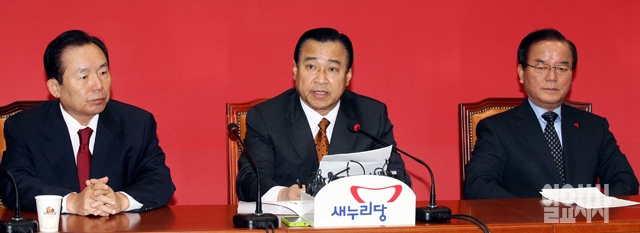 새누리당 이완구 원내대표(가운데)가 12일 서울 여의도 국회에서 열린 최고중진연석회의에서 모두발언을 하고 있다.