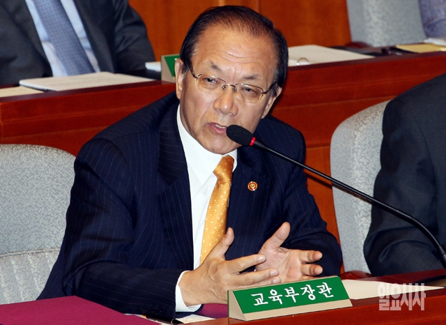 황우여 교육부 장관이 12일 서울 여의도 국회에서 열린 예산결산특별위원회 전체회의에서 의원들의 질의에 답하고 있다.