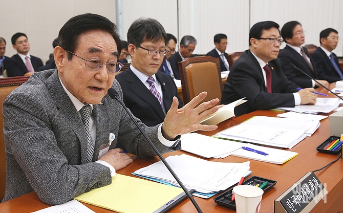 12일, 서울 여의도 국회 농림축산식품해양수산위원회 회의실에서 열린 예산안 관련 전체회의에 현명관 한국마사회장이 의원들의 질의에 답변하고 있다.