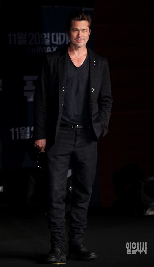 할리우드 배우 브래드 피트가 13일 서울 여의도 콘래드 호텔에서 열린 영화 '퓨리'(감독 데이비드 에이어) 내한 기자회견에서 포토타임을 갖고 있다.