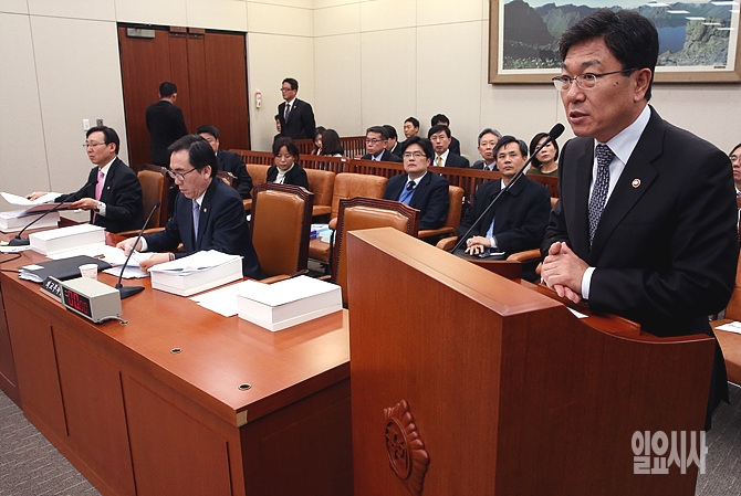 13일, 서울 여의도 국회 외교통일위원회 회의실에서 열린 전체회의에서 윤상직 산업통상자원부장관이 인사말을 하고 있다.