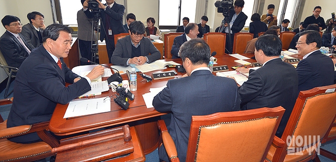 17일 오전, 홍문표 예결위원장(사진 왼쪽)이 서울 여의도 국회에서 열린 예산결산특별위원회 예산안등조정소위를 진행하고 있다.