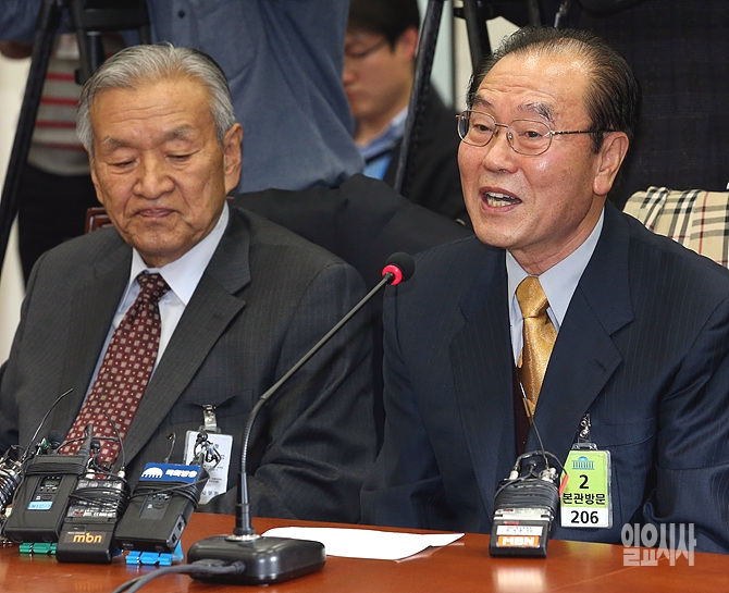 17일, 서울 여의도 국회에서 퇴직공무원 연금 수급권자 총연합회 김기옥 회장이 연금개혁과 관련해 새누리당 김무성 대표 등 지도부와 면담을 갖고 있는 가운데 김 회장이 발언하고 있다.