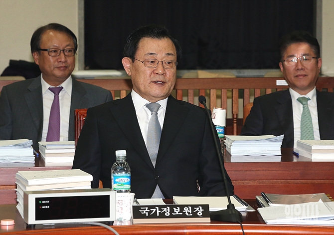 17일, 서울 여의도 국회에서 내년도 국정원 예산안 심사를 위한 정보위원회(위원장 김광림) 전체회의가 열린 가운데, 이병기 국정원장이 출석해 있다.