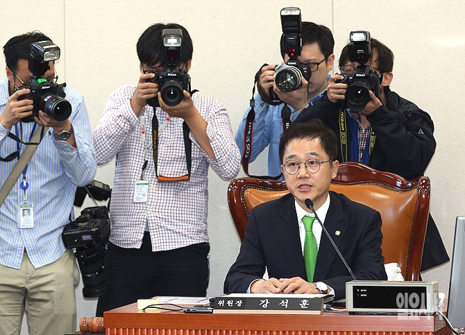 17일, 서울 여의도 국회 기획재정위원회 회의실에서 열린 조세소위에서 강석훈 위원장이 발언하고 있다.
