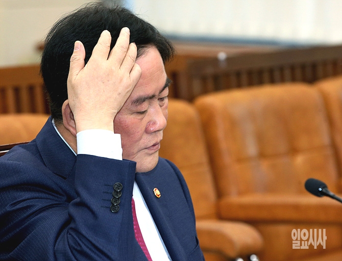 18일, 최경환 경제부총리 겸 기획재정부장관이 서울 여의도 국회에서 열린 기획재정위원회 전체회의 도중 머리를 쓸어 올리고 있다.