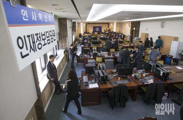 인사혁신처 직원들이 19일 오전 서울 세종로 정부서울청사 19층에 마련된 새 사무실에서 정리하고 있다.