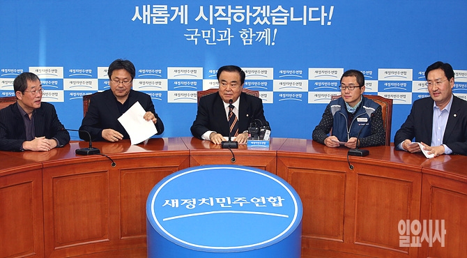19일, 서울 여의도 국회 새정치민주연합 당 대표실에서 문희상 비대위원장, 우윤근 원내대표 등 지도부가참석한 가운데, '공적연금 강화를 위한 공동투쟁본부' 정책간담회에서 문 비대위원장이 모두발언하고 있다.