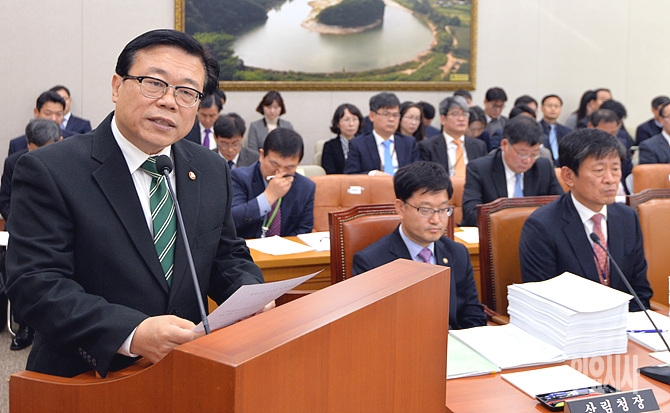 19일, 서울 여의도 국회 농림축산해양식품수산위원회 회의실에서 열린 전체회의에서 이동필 농림축산식품부장관이 업무보고를 하고 있다.