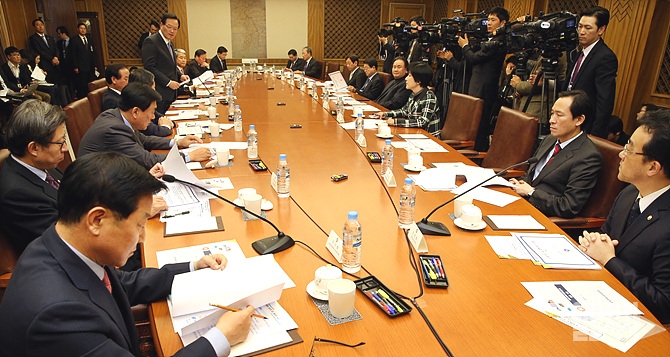 정의화 국회의장, 박형준 국회 사무총장 등이 참석한 가운데 19일, 서울 여의도 국회에서 제2차 의장 주재 위원장단 연석회의가 열리고 있다.