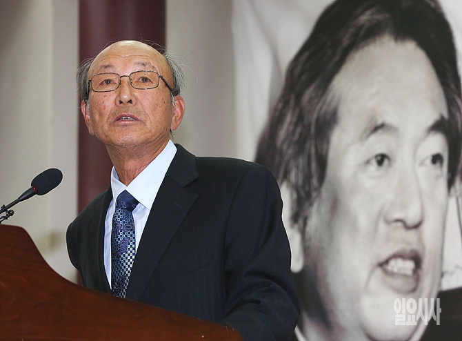 당산 김철 선생의 20주기를 맞아 20일, 서울 여의도 국회 의원회관 제1소회의실에서 그의 생애와 사상을 재조명하는 학술 심포지엄이 개최된 가운데, 심연식 전 통일사회당 정치위원이 축사를 하고 있다.