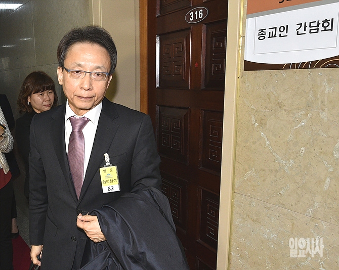 24일, 서울 여의도 국회에서 열린 종교인 과세 관련 간담회 직후 한 종교인 참석자가 굳은 표정으로 간담회장을 나서고 있다.