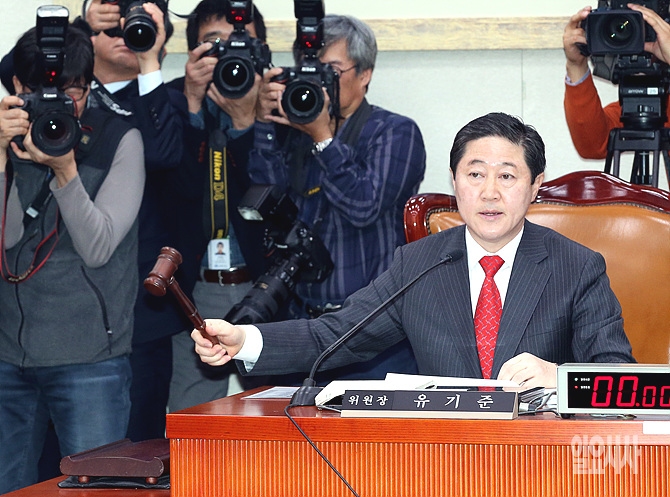 24일, 유기준 국회 외교통일위원회 위원장이 서울 여의도 국회 외통위원회 회의실에서 열린 전체회의서 북한인권법을 상정시키고 있다.