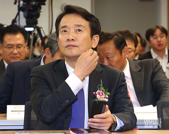 25일 오전, 서울 여의도 국회 제3세미나실에서 열린 '통일 대비 수도권 철도망 구축 방안'을 주제로 2014 철도정책 심포지엄(주최 박기춘 국회 국토교통위원장)에 남경필 경기지사가 참석해 있다.