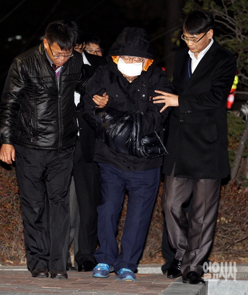 유병언 전 세모그룹 회장의 최측근으로 알려진 김필배 전 문진미디어 대표가 25일 인천지방검찰청으로 조사를 받기 위해 압송되고 있다.