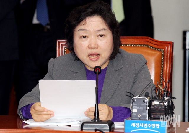 새정치민주연합 인재근 비대위원이 26일 서울 여의도 국회에서 열린 비상대책위원회의에서 모두발언을 하고 있다.