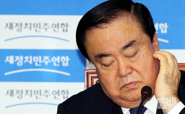 새정치민주연합 문희상 비대위원장이 26일 서울 여의도 국회에서 열린 비상대책위원회의에서 얼굴을 만지고 있다.
