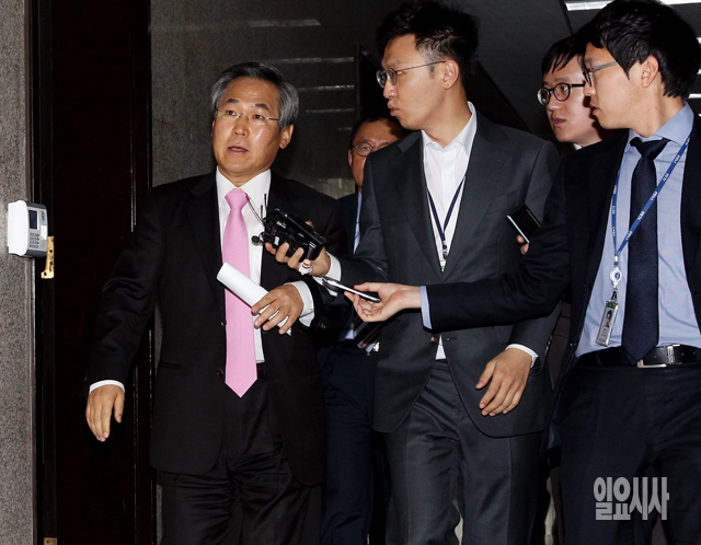 [포토] 질문 받으며 회의 참석하는 우윤근