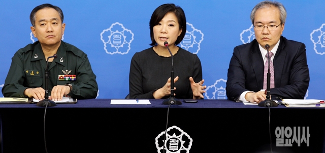 외교부, 국방부, 보건복지부가 26일 서울 도렴동 외교부에서 에볼라 위기대응 긴급구호대 파견 일정 등 잠정 결정에 관한 합동 브리핑을 하고 있다. 왼쪽부터 국방부 박철균 국제정책차장, 오영주 개발협력국장, 보건복지부 권준욱 공공보건정책관.