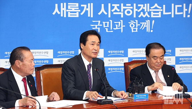 이동희 전국 시·도의회의장협의회 회장(사진 가운데)이 27일, 서울 여의도 국회 당대표 회의실에서 열린 '전국 시·도의회의장협의회 간담회'에 참석해 발언하고 있다.