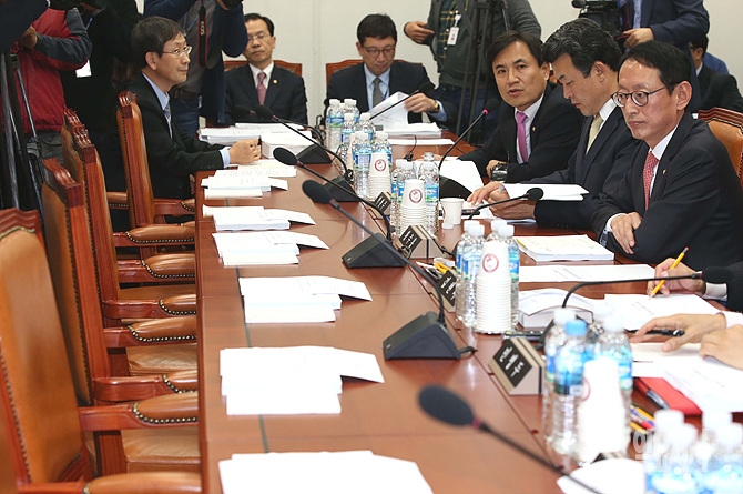 새정치민주연합이 새누리당의 누리과정 예산 심사 파행을 이유로 모든 상임위 법안심사를 잠정 보류한 지 이틀째인 27일 오후 서울 여의도 국회에서 새누리당 단독으로 예산결산특별위원회 7차 예산안등조정소위원회가 진행되고 있다.