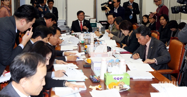 28일 서울 여의도 국회에서 열린 교육문화체육관광위원회 예산심사소위에서 김태년 소위원장을 비롯한 참석의원들이 예산안을 심사하고 있다.