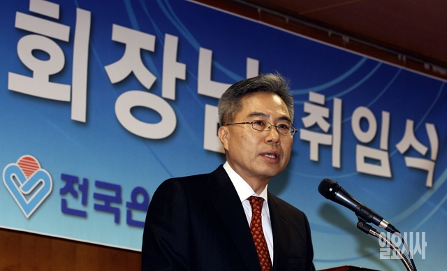 하영구 신임 전국은행연합회장이 1일 서울 중구 명동 은행회관에서 열린 취임식에서 취임사를 하고 있다.