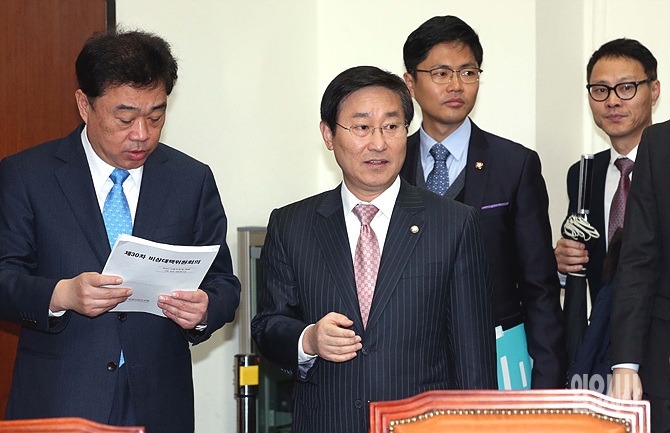 1일, 서울 여의도 국회에서 예정된 비선실세국정농단 진상조사단 1차 회의 참석을 위해 박범계 단장(사진 가운데)이 입장하고 있다.