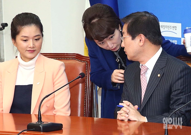 비선실세국정농단 진상조사단 1차 회의가 1일, 서울 여의도 국회에서 열린 가운데 박범계 단장(오른쪽)과 이언주 의원이 잠시 이야기를 나누고 있다.