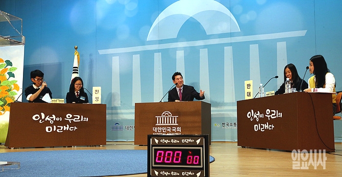 서울 여의도 국회 의원회관에서 1일 오후, '1회 국회의장배 중-고교생 스피치 및 토론회 결선대회'가 열린 가운데 참가 학생들이 토론을 벌이고 있다.