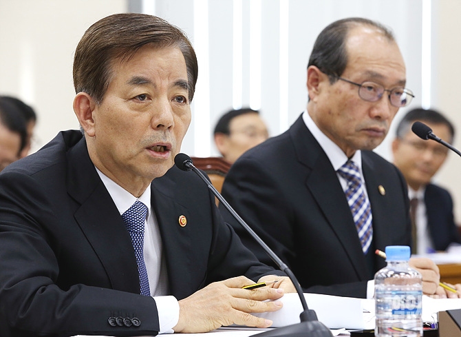 1일, 서울 여의도 국회 국방위원회 회의실에서 열린 국방위 전체회의에서 한민구 국방부장관이 의원들의 질의에 답변하고 있다.