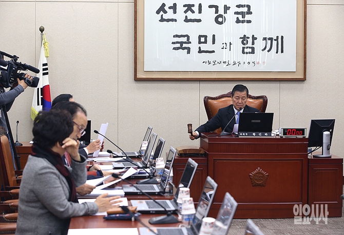 1일, 서울 여의도 국회 국방위원회 회의실에서 열린 국방위 전체회의에서 황진하 위원장이 회의 개의를 선언하고 있다.
