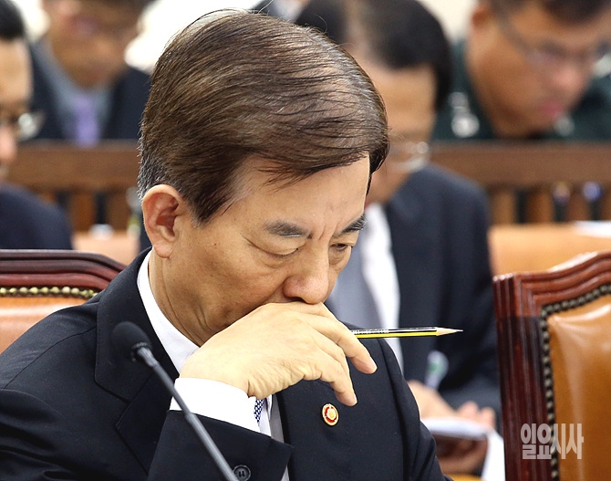 1일, 서울 여의도 국회 국방위원회 회의실에서 열린 국방위 전체회의 도중 한민구 국방부장관이 잠시 고민에 빠져 있다.