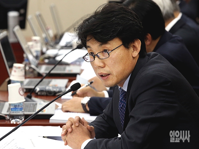 1일, 서울 여의도 국회 국방위원회 회의실에서 열린 국방위 전체회의에서 새정치민주연합 진성준 의원이 한민구 국방부장관에게 질의하고 있다.