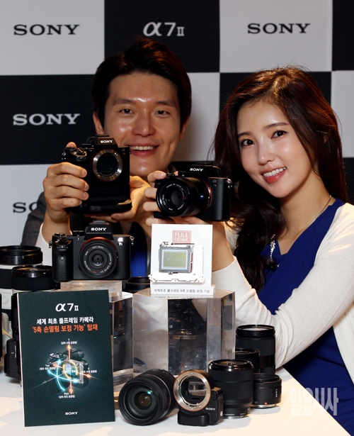 소니코리아가 2일 서울 종로구 그랑서울 나인트리 컨벤션에서 플래그십 풀프레임 미러리스 카메라 'A7II'를 선보이고 있다. 'A7II'는 2,430만 화소의 35mm 풀프레임 이미지 센서를 탑재한 초소형 초경량의 렌즈교환식 미러리스 카메라다.