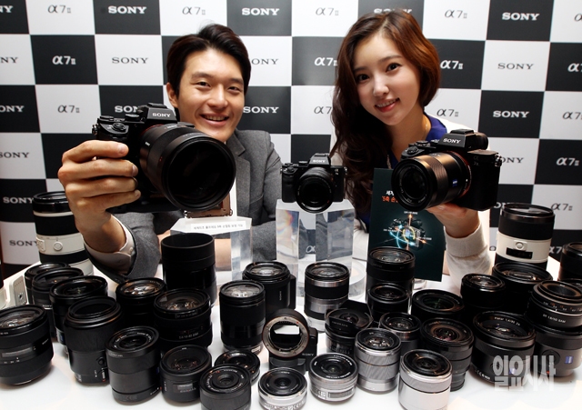 소니코리아가 2일 서울 종로구 그랑서울 나인트리 컨벤션에서 플래그십 풀프레임 미러리스 카메라 'A7II'를 선보이고 있다. 'A7II'는 2,430만 화소의 35mm 풀프레임 이미지 센서를 탑재한 초소형 초경량의 렌즈교환식 미러리스 카메라다.