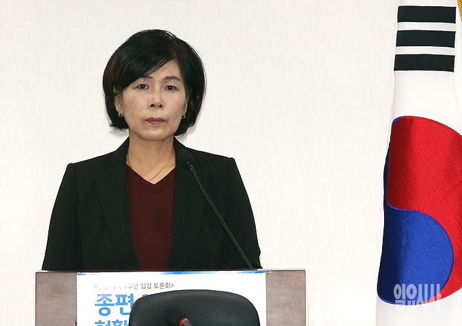 1일, 서울 여의도 국회 의원회관에서 새정치민주연합 민주정책연구원과 최민희 의원실 주최로 '종편 3주년, 현황 및 평가 토론회'가 열린 가운데, 최 의원이 인사말을 하고 있다.