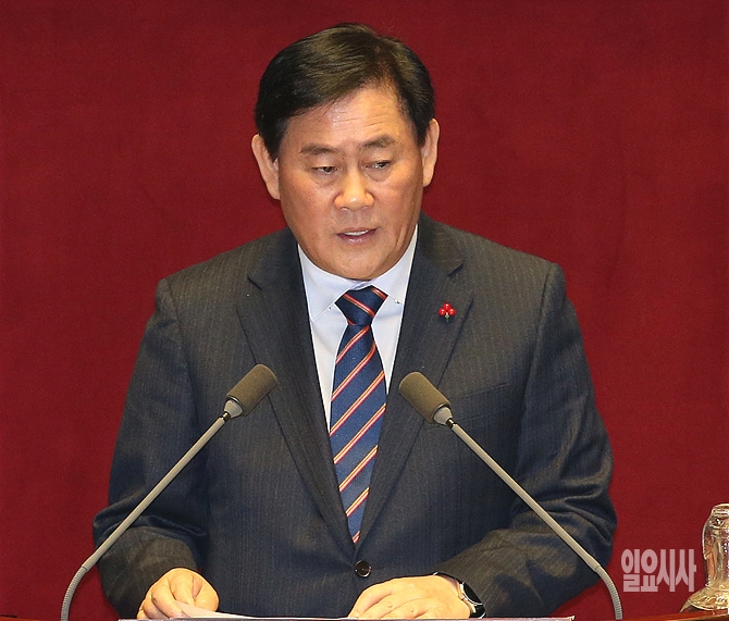 2일 오후, 서울 여의도 국회 본회의장에서 최경환 경제부총리 겸 기획재정부장관이 예산안과 관련한 정부측 입장에 대해 발언하고 있다.