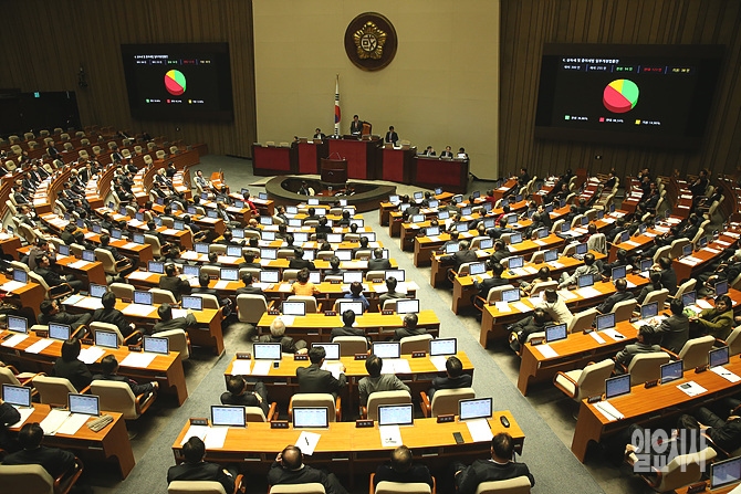 여야는 2일 오후, 서울 여의도 국회 본회의장에서 본회의를 열고 상속세 및 증여세법 수정안을 본회의에 대해 표결한 결과 재석 255명 중 찬성 94명, 반대 123명, 기권 38명으로 부결처리했다.