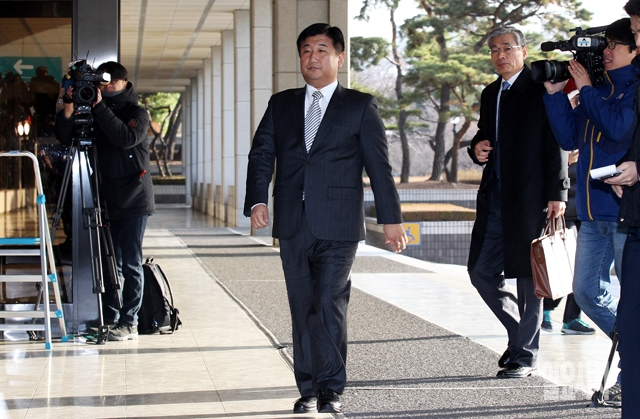 청와대 내 문건 유출의 핵심 인물로 지목받고 있는 박관천 경정(전 청와대 공직기강비서관)이 3일 서울 서초동 서울중앙지검으로 조사를 받기 위해 들어서고 있다.