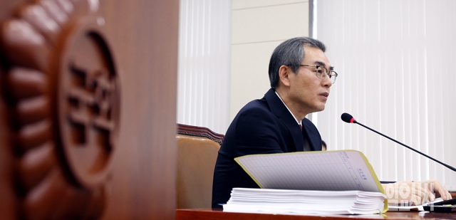 정재찬 공정거래위원장 후보자가 4일 서울 여의도 국회 정무위원회 회의실에서 열린 인사청문회에서 의원들의 질의에 답하고 있다.